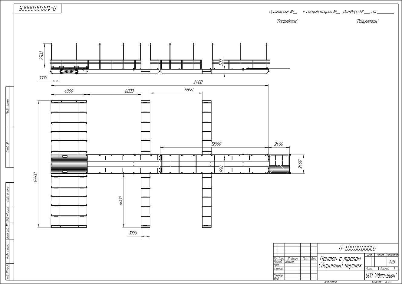 На понтоне монтируется откидной трап, для схода на берег, длина трапа от двух до шести метров.